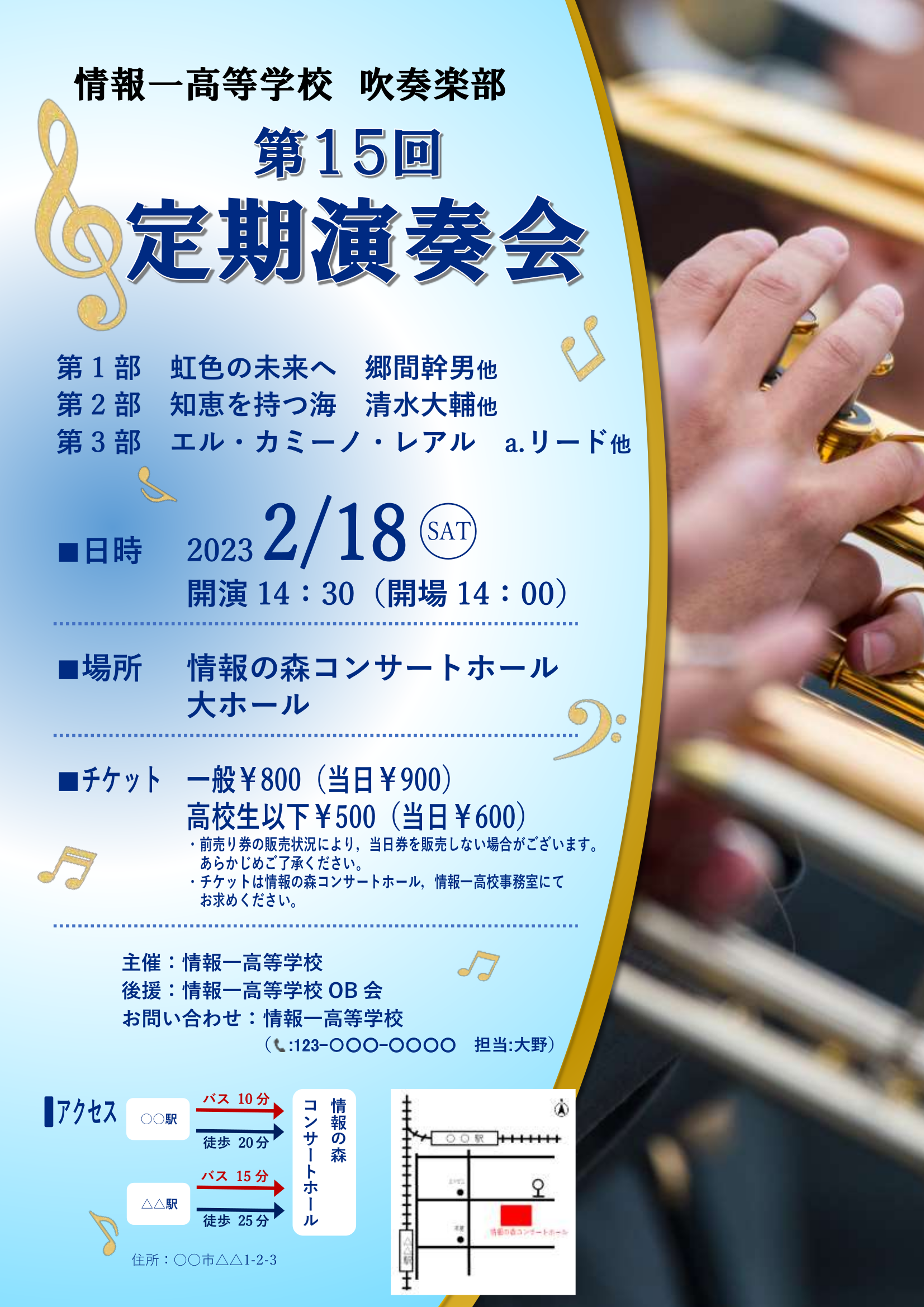 ・チケットは情報の森コンサートホール,情報一高校事務室にてお求めください。